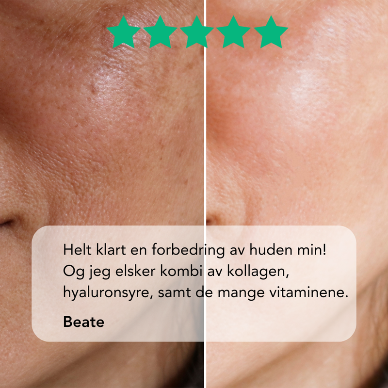 Allerede fra 25-årsalderen reduseres kroppens naturlige produksjon av kollagen og hyaluronsyre. Dette kan føre til fine linjer, slappere hud og tørrhet. Huden mister gløden, elastisiteten og fastheten – men det finnes heldigvis en naturlig måte å støtte den på.