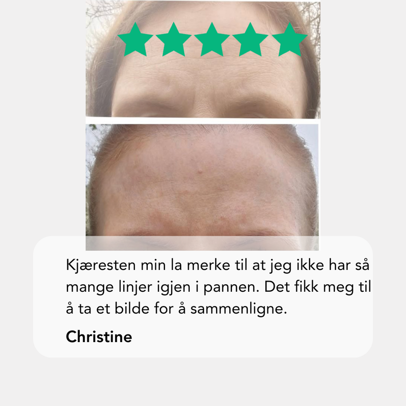 De fleste ser synlige resultater etter 8–12 uker med daglig inntak. Vitenskapelige studier viser at rynkedybden reduseres og hudens fuktighet øker markant! På nettsiden vår kan du lese mer om en rekke studier og resultater – og se hva kundene våre sier om sine opplevelser.